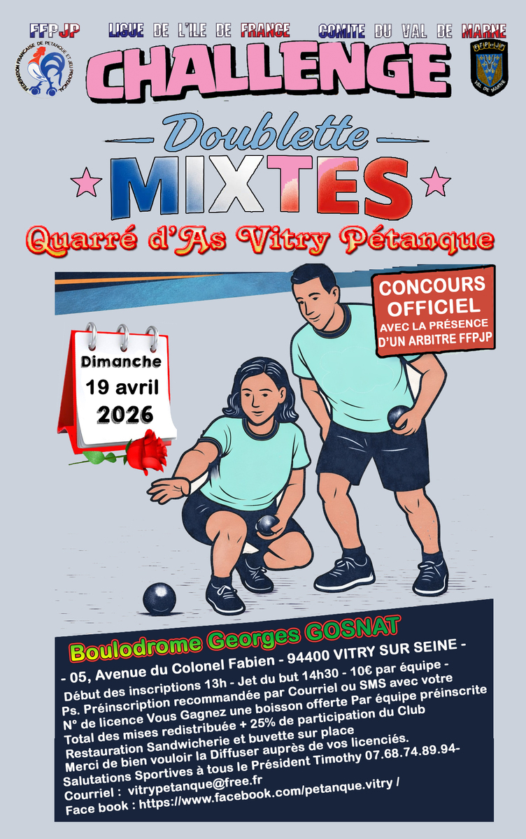 CHALLENGE Doublette Mixte Départemental du Dimanche 19 AVRIL 2026,